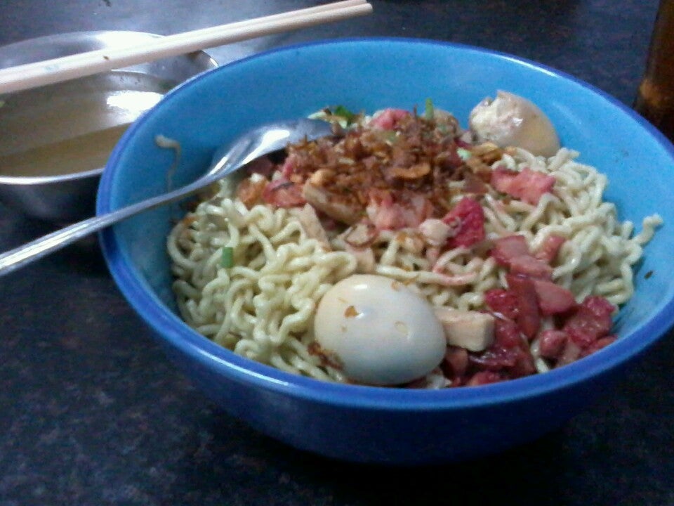 Makanan :bakmi dgn babi cincang dan babi iris merah